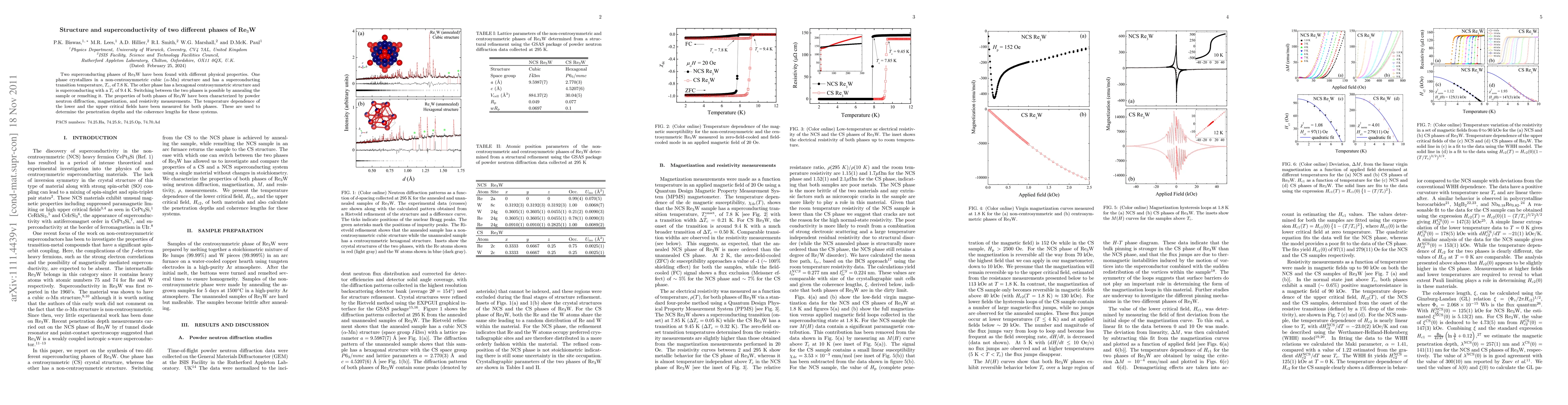 This paper investigates two superconducting phases of Re3W, characterized by distinct crystal structures and differing superconducting transition temperatures (7.8 K and 9.4 K). The phases can be switched via annealing or remelting, and their properties were analyzed using neutron diffraction, magnetization, and resistivity measurements.