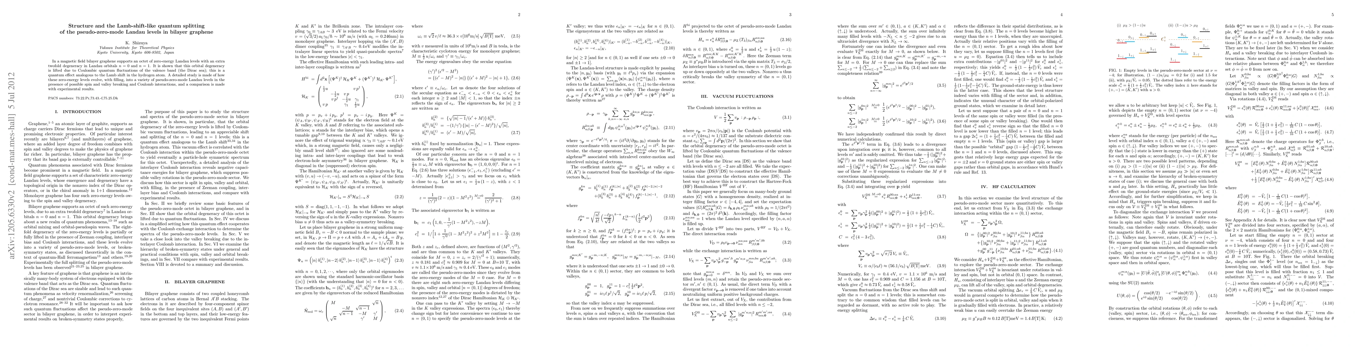 This paper investigates the quantum splitting of pseudo-zero-mode Landau levels in bilayer graphene due to Coulombic fluctuations, analogous to the Lamb shift in hydrogen. It details the evolution of these zero-energy levels under various interactions and compares theoretical findings with experimental results.