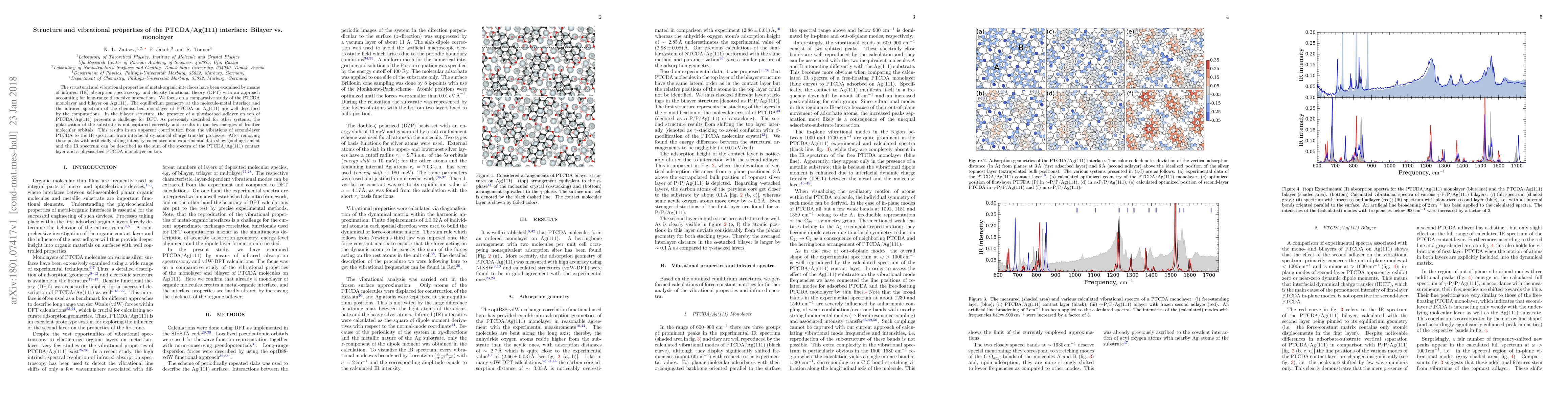 This research compares PTCDA monolayer and bilayer on Ag(111) using IR spectroscopy and DFT. DFT accurately describes the monolayer, but struggles with bilayer due to uncaptured polarization effects. Correcting these, calculated and experimental IR spectrum data align, showing the spectrum results from the contact layer and a physisorbed PTCDA monolayer.