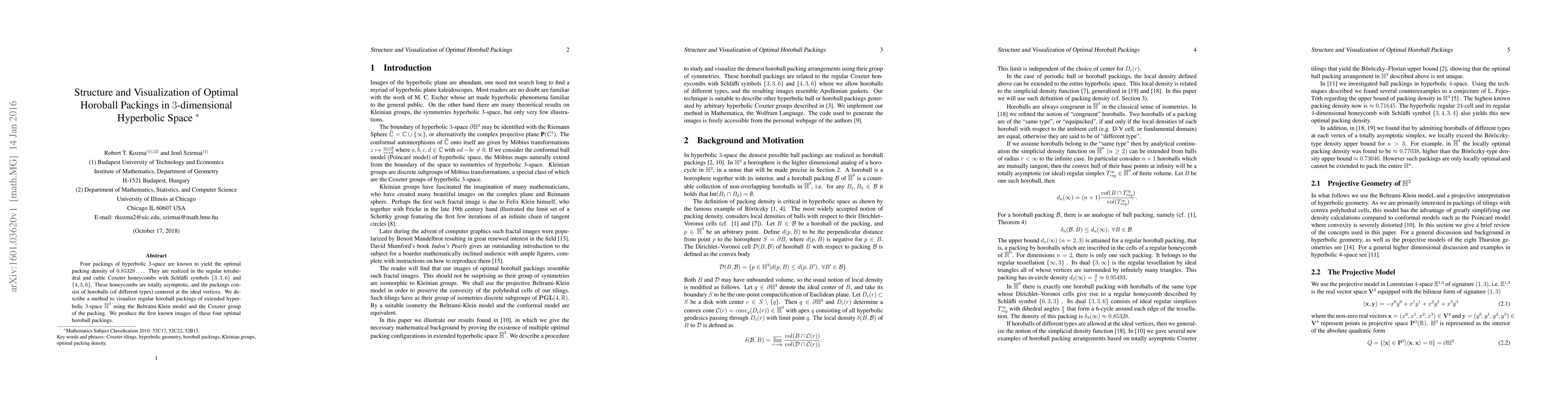 The paper introduces a method for visualizing regular horoball packings in extended hyperbolic 3-space using Coxeter groups and the Beltrami-Klein model.