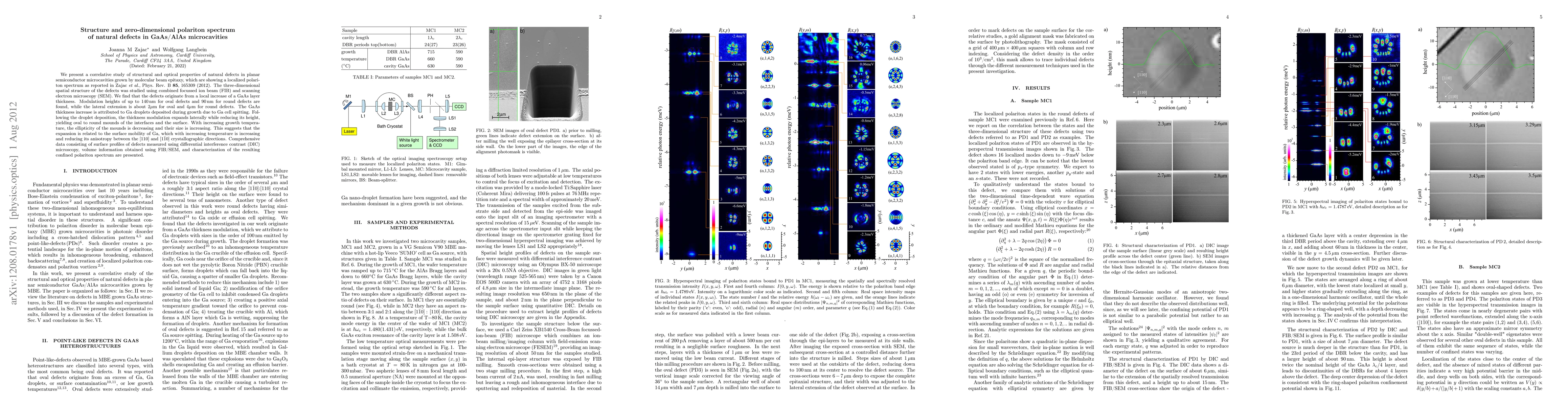 This paper investigates the structural origins of natural defects in GaAs/AlAs microcavities, revealing that localized polariton spectra arise from GaAs thickness modulations caused by Ga droplets. The study combines FIB/SEM and DIC microscopy to characterize the three-dimensional structure and resulting optical properties of these defects.