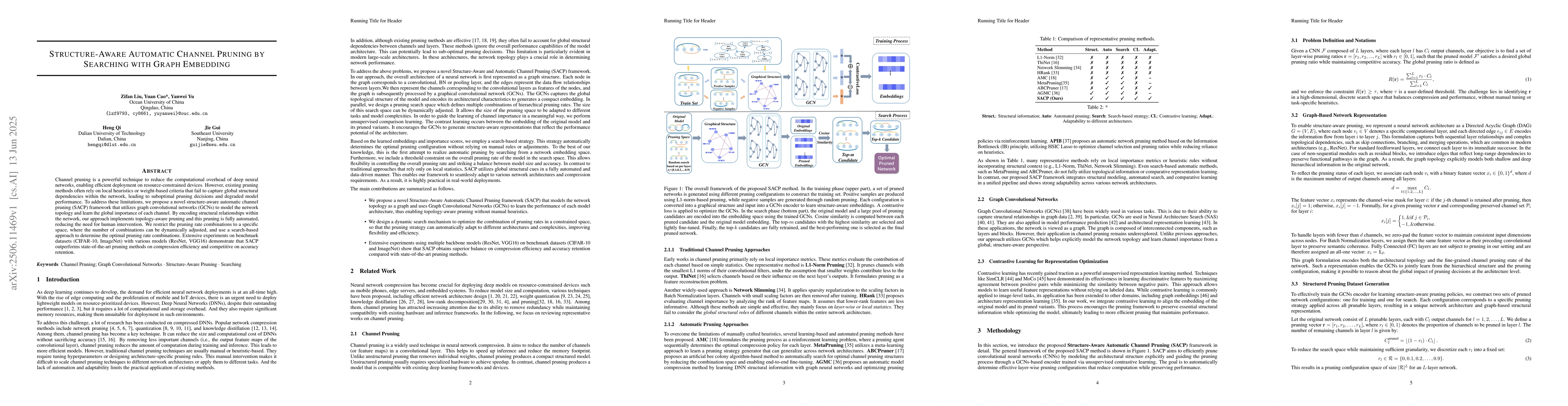 This research introduces a novel structure-aware automatic channel pruning (SACP) framework for deep neural networks, using graph convolutional networks (GCNs) to model network topology and determine channel importance. SACP outperforms existing methods in compression efficiency while maintaining competitive accuracy on benchmark datasets like CIFAR-10 and ImageNet with models such as ResNet and VGG16.