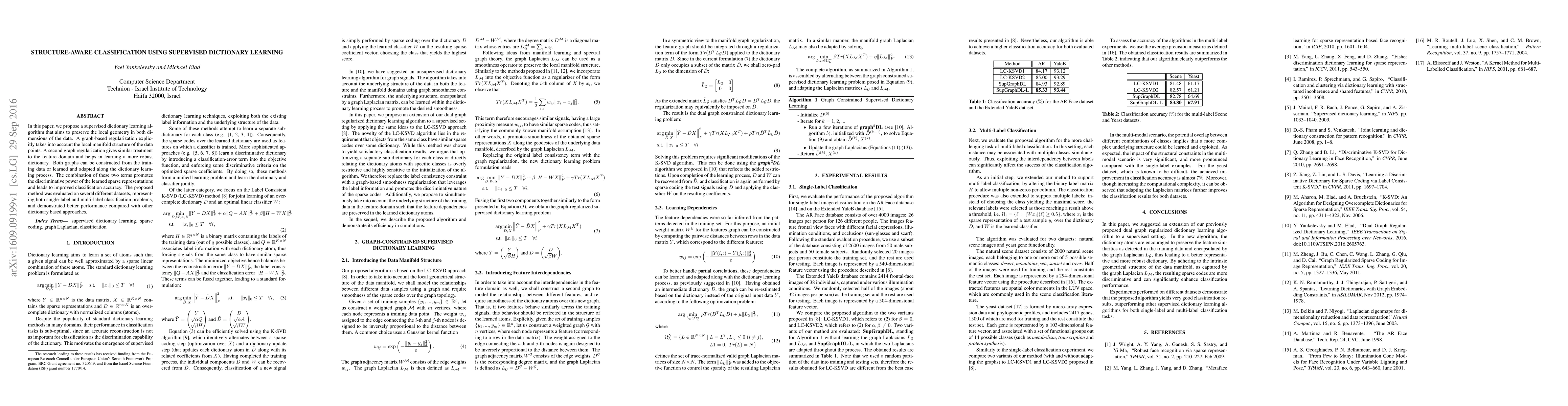 This paper introduces a supervised dictionary learning algorithm that enhances classification accuracy by preserving local geometry in data through graph-based regularization. The method combines manifold structure consideration in both data and feature domains, leading to improved performance over other dictionary-based approaches across various datasets.