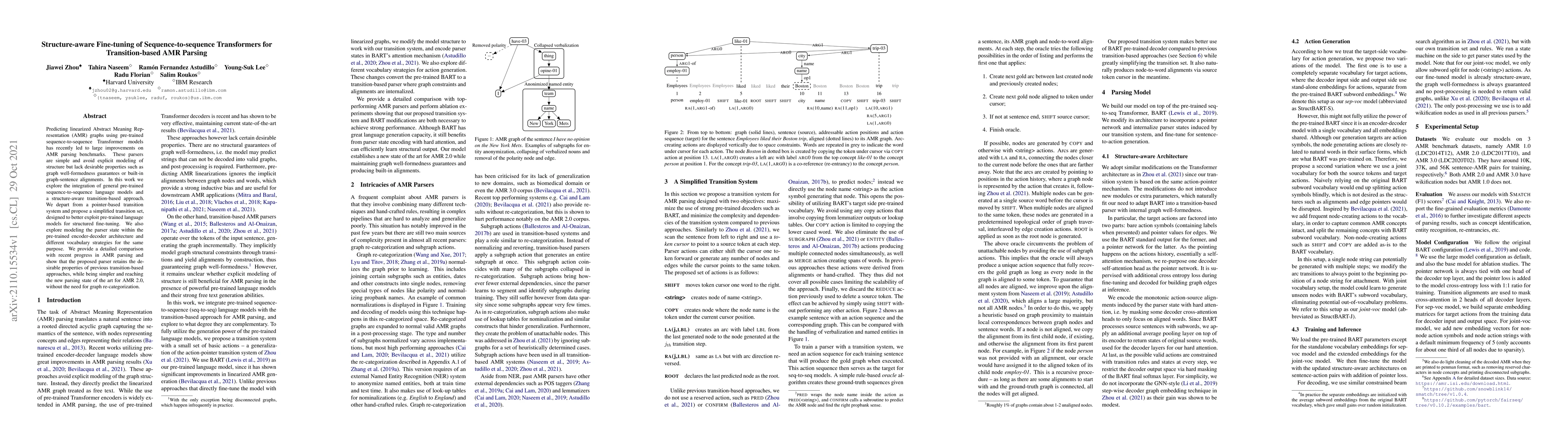 This paper presents a structure-aware fine-tuning method for sequence-to-sequence Transformers to enhance transition-based AMR parsing, achieving state-of-the-art results while maintaining the benefits of transition-based approaches, such as graph well-formedness and alignment.