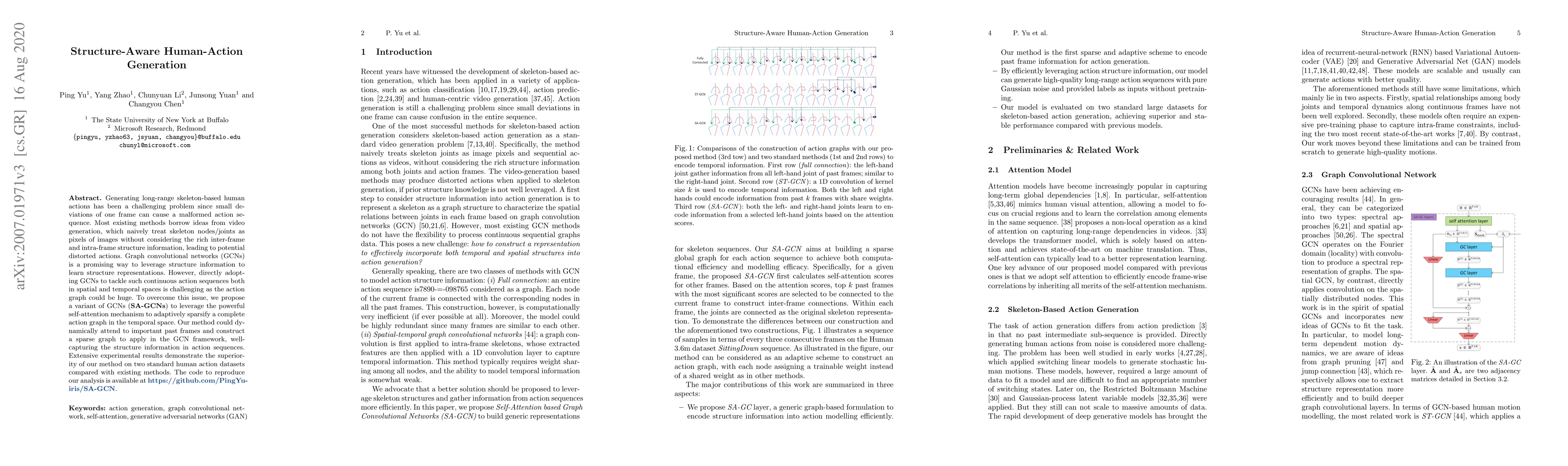 Researchers propose a new method to generate human actions with structure-awareness, leveraging self-attention mechanisms to adaptively sparsify action graphs and improve accuracy.