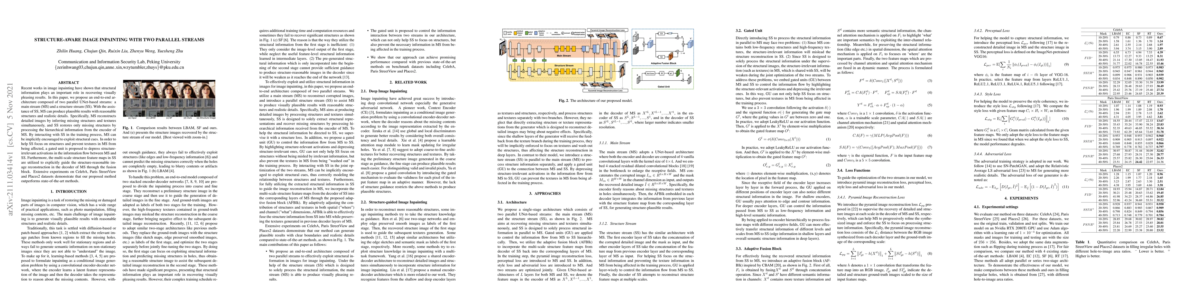 Recent works in image inpainting have shown that structural information plays an important role in recovering visually pleasing results. In this paper, we propose an end-to-end architecture composed of two parallel UNet-based streams: a main stream (MS) and a structure stream (SS). With the assistance of SS, MS can produce plausible results with reasonable structures and realistic details. Specifically, MS reconstructs detailed images by inferring missing structures and textures simultaneously, and SS restores only missing structures by processing the hierarchical information from the encoder of MS. By interacting with SS in the training process, MS can be implicitly encouraged to exploit structural cues. In order to help SS focus on structures and prevent textures in MS from being affected, a gated unit is proposed to depress structure-irrelevant activations in the information flow between MS and SS. Furthermore, the multi-scale structure feature maps in SS are utilized to explicitly guide the structure-reasonable image reconstruction in the decoder of MS through the fusion block. Extensive experiments on CelebA, Paris StreetView and Places2 datasets demonstrate that our proposed method outperforms state-of-the-art methods.