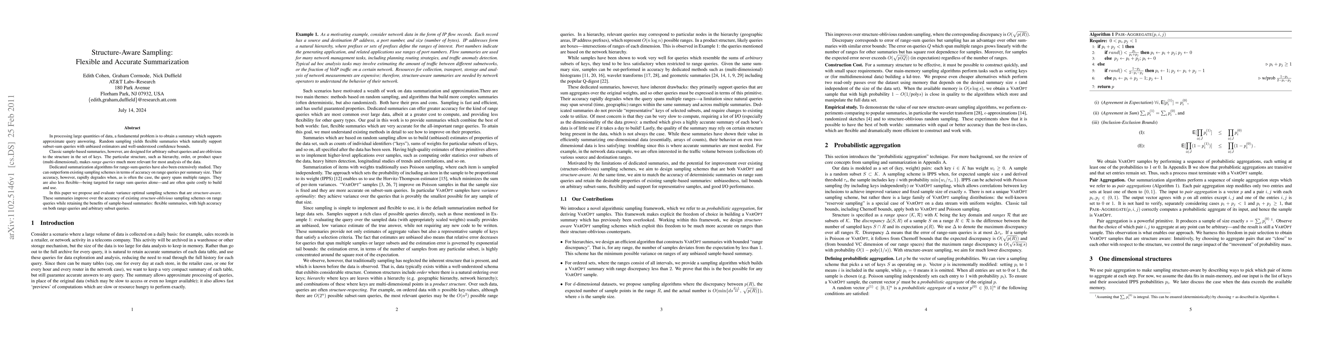 This paper proposes structure-aware sampling schemes for flexible and accurate summarization of large data sets, outperforming existing methods in accuracy on range queries while retaining flexibility.