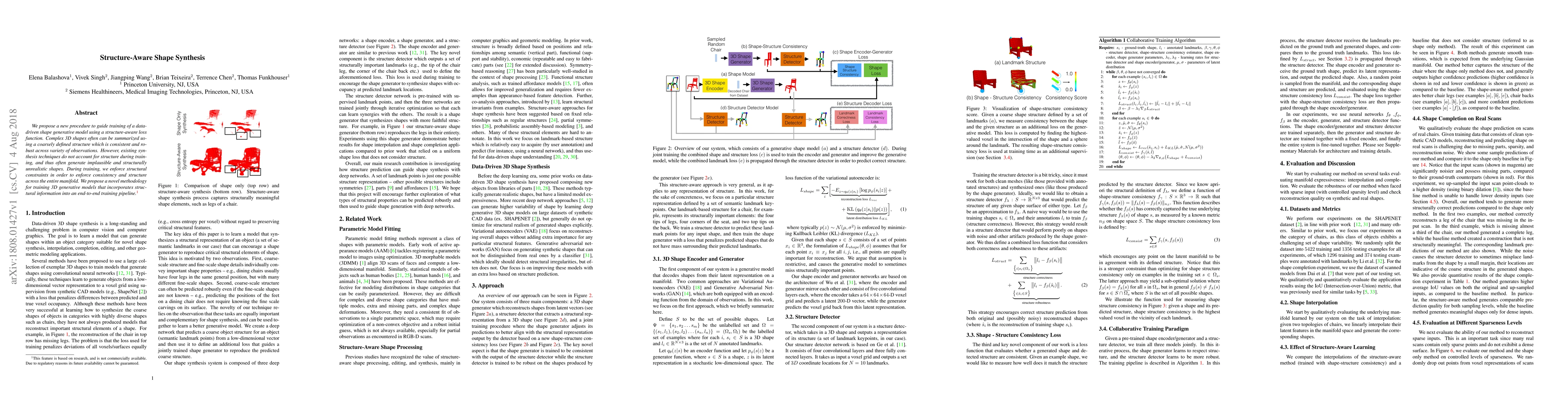 This work represents a first step towards 'structure-aware' shape synthesis, distinguishing itself by focusing on landmark points and their consistency, applicable to various structural models beyond chairs, such as skeletons or parameterized templates in domains like human bodies or faces.