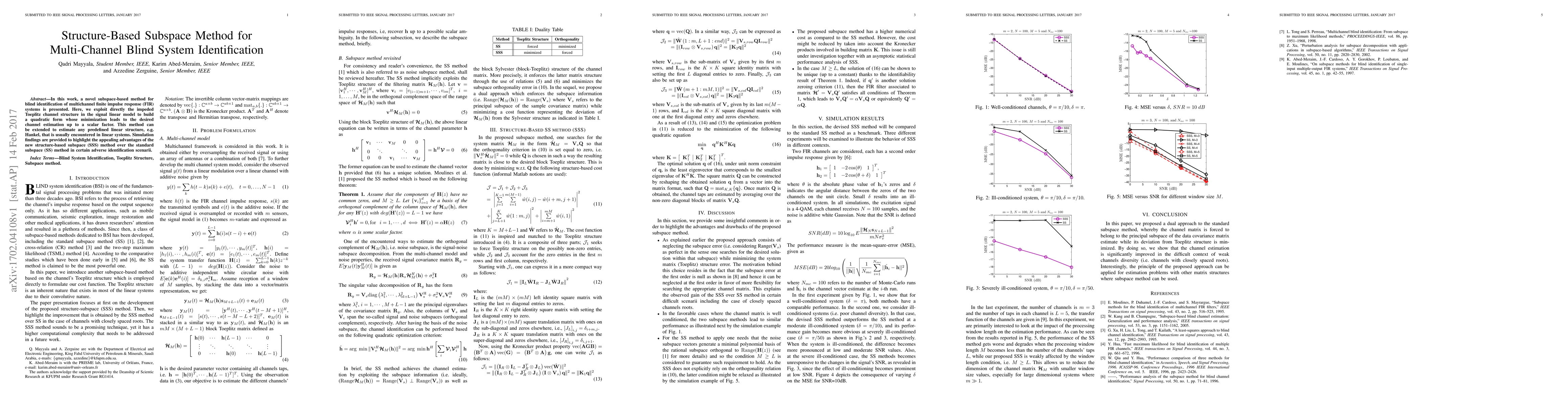 In this work, a novel subspace-based method for blind identification of multichannel finite impulse response (FIR) systems is presented. Here, we exploit directly the impeded Toeplitz channel structure in the signal linear model to build a quadratic form whose minimization leads to the desired channel estimation up to a scalar factor. This method can be extended to estimate any predefined linear structure, e.g. Hankel, that is usually encountered in linear systems. Simulation findings are provided to highlight the appealing advantages of the new structure-based subspace (SSS) method over the standard subspace (SS) method in certain adverse identification scenarii.
