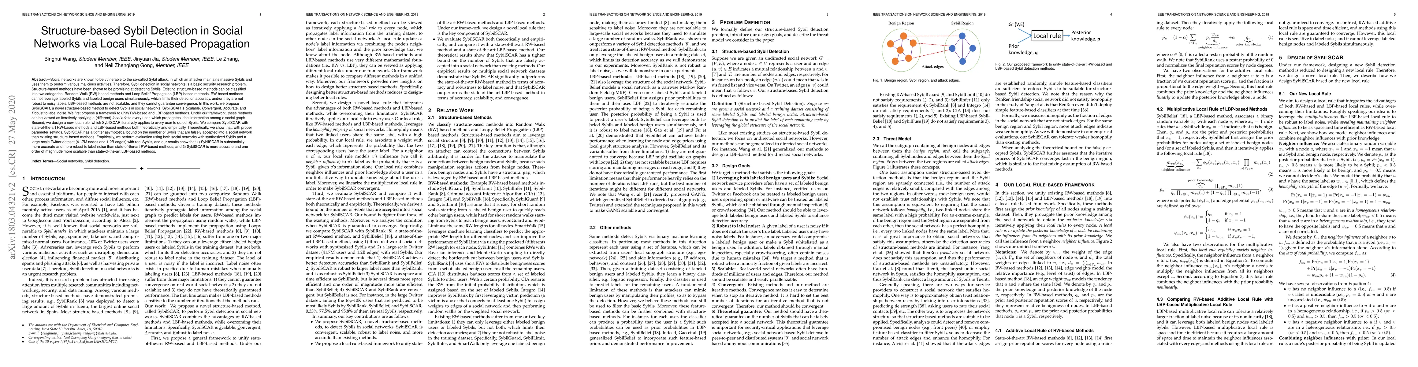 This paper proposes SybilSCAR, a novel structure-based Sybil detection method for social networks that is scalable, convergent, accurate, and robust to label noise. It unifies Random Walk and Loop Belief Propagation methods through a new local rule-based propagation framework, achieving superior performance compared to existing methods in both theoretical and empirical evaluations.