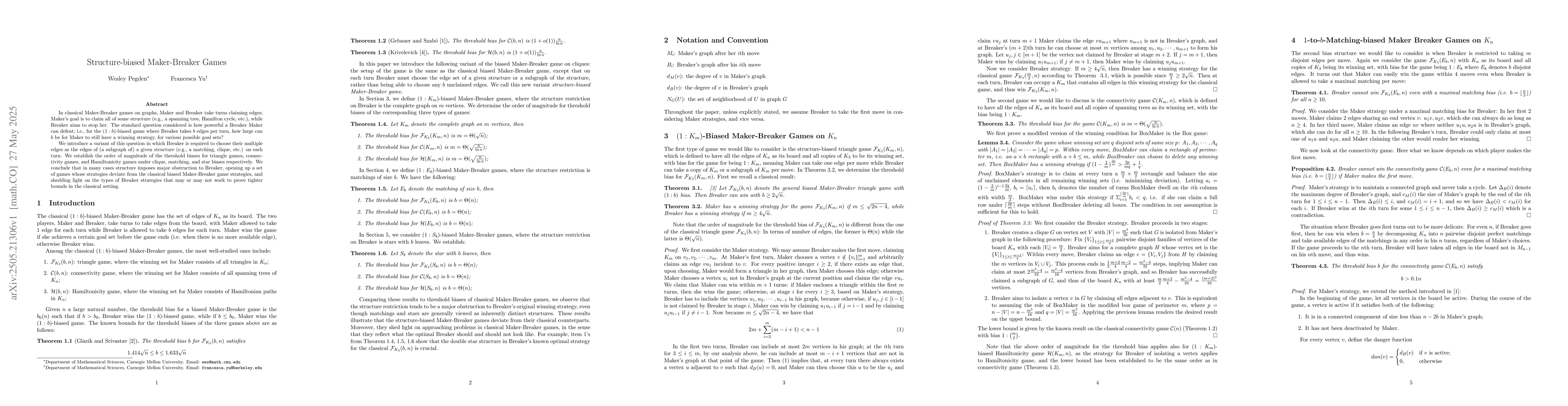 The paper presents a novel structure-biased variant of Maker-Breaker games and determines the threshold biases for specific graph structures under various biases, contributing to the theoretical understanding of these games.