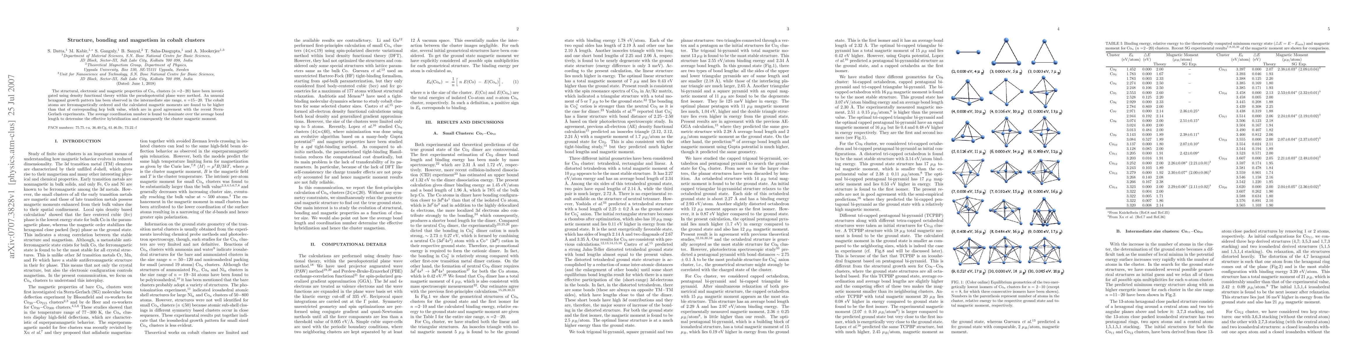 Researchers studied cobalt clusters using density functional theory and found a unique hexagonal growth pattern in intermediate sizes, with higher magnetic moments than bulk hcp cobalt.