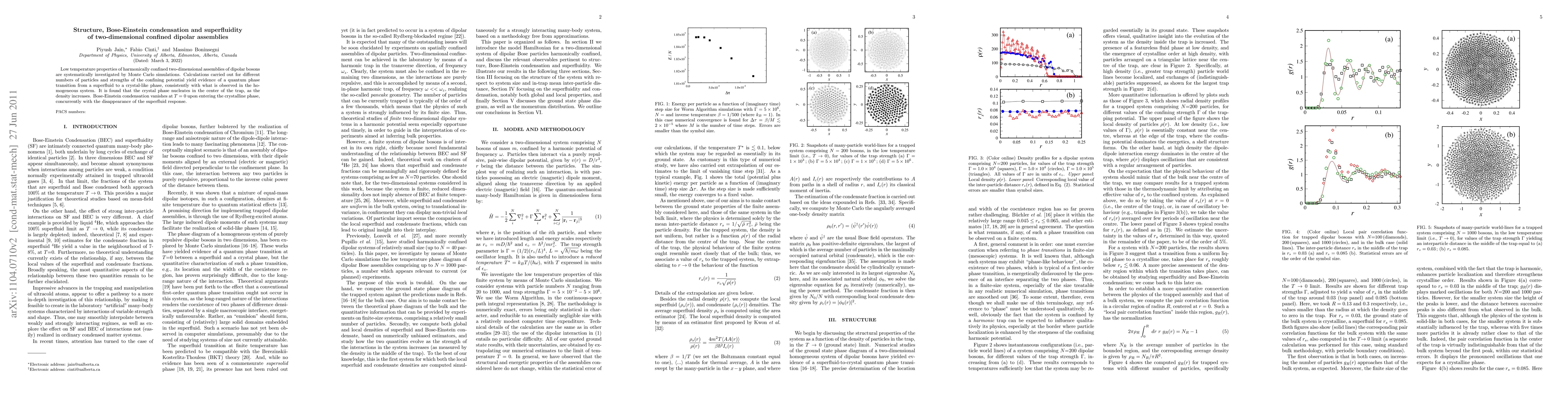 The research utilized extensive Quantum Monte Carlo simulations to investigate the properties of dipolar bosons confined in two-dimensional traps, focusing on their structure, superfluidity, Bose-Einstein condensation, and ground state phase diagram for different system sizes and trap densities.