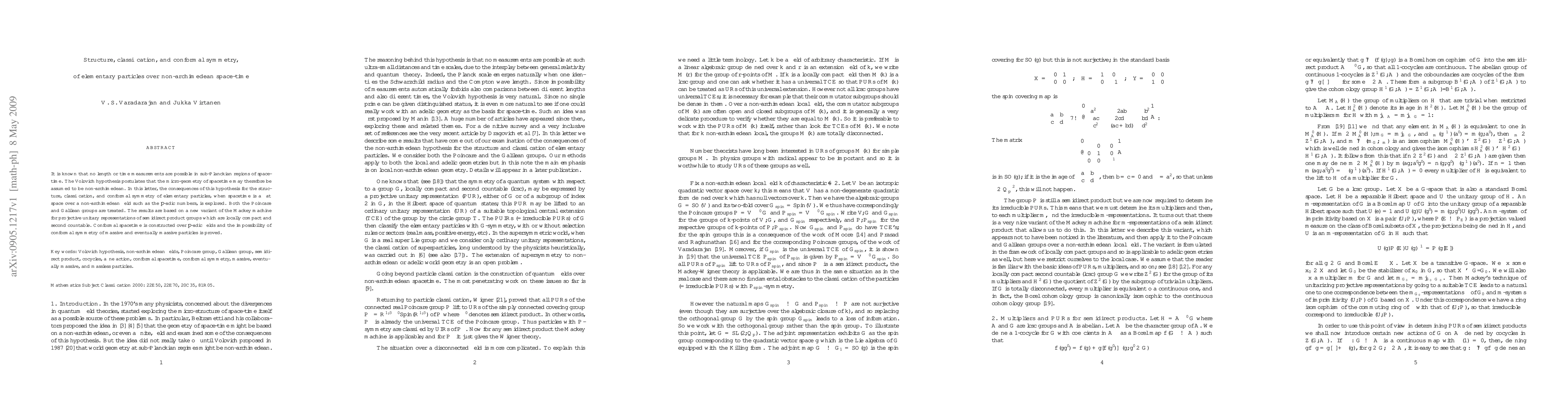 A new study explores the structure, classification, and conformal symmetry of elementary particles in a non-archimedean space-time, finding that conformal symmetry is impossible for massive particles.