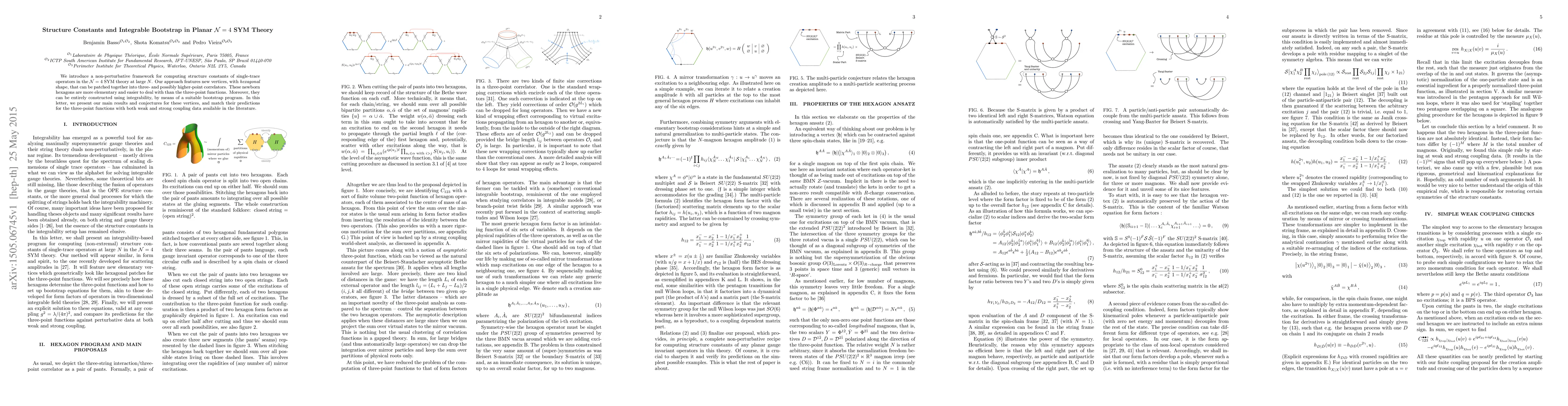 This paper proposes a non-perturbative framework for calculating structure constants in N=4 SYM theory using new hexagonal vertices that simplify correlator construction. The approach leverages integrability and bootstrap methods to predict three-point functions, matching results with existing weak and strong coupling data.