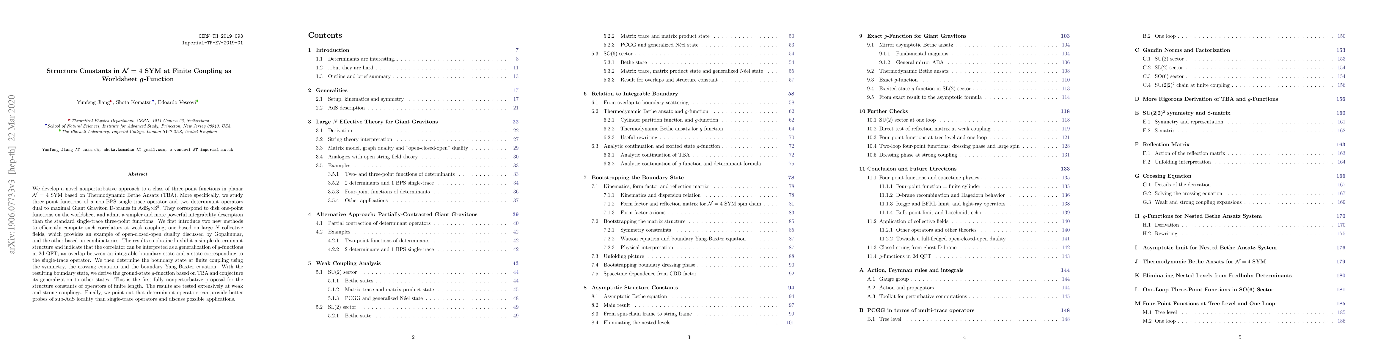 We develop a novel nonperturbative approach to a class of three-point functions in planar $\mathcal{N}=4$ SYM based on Thermodynamic Bethe Ansatz (TBA). More specifically, we study three-point functions of a non-BPS single-trace operator and two determinant operators dual to maximal Giant Graviton D-branes in AdS$_5\times$S$^{5}$. They correspond to disk one-point functions on the worldsheet and admit a simpler and more powerful integrability description than the standard single-trace three-point functions. We first introduce two new methods to efficiently compute such correlators at weak coupling; one based on large $N$ collective fields, which provides an example of open-closed-open duality discussed by Gopakumar, and the other based on combinatorics. The results so obtained exhibit a simple determinant structure and indicate that the correlator can be interpreted as a generalization of $g$-functions in 2d QFT; an overlap between an integrable boundary state and a state corresponding to the single-trace operator. We then determine the boundary state at finite coupling using the symmetry, the crossing equation and the boundary Yang-Baxter equation. With the resulting boundary state, we derive the ground-state $g$-function based on TBA and conjecture its generalization to other states. This is the first fully nonperturbative proposal for the structure constants of operators of finite length. The results are tested extensively at weak and strong couplings. Finally, we point out that determinant operators can provide better probes of sub-AdS locality than single-trace operators and discuss possible applications.
