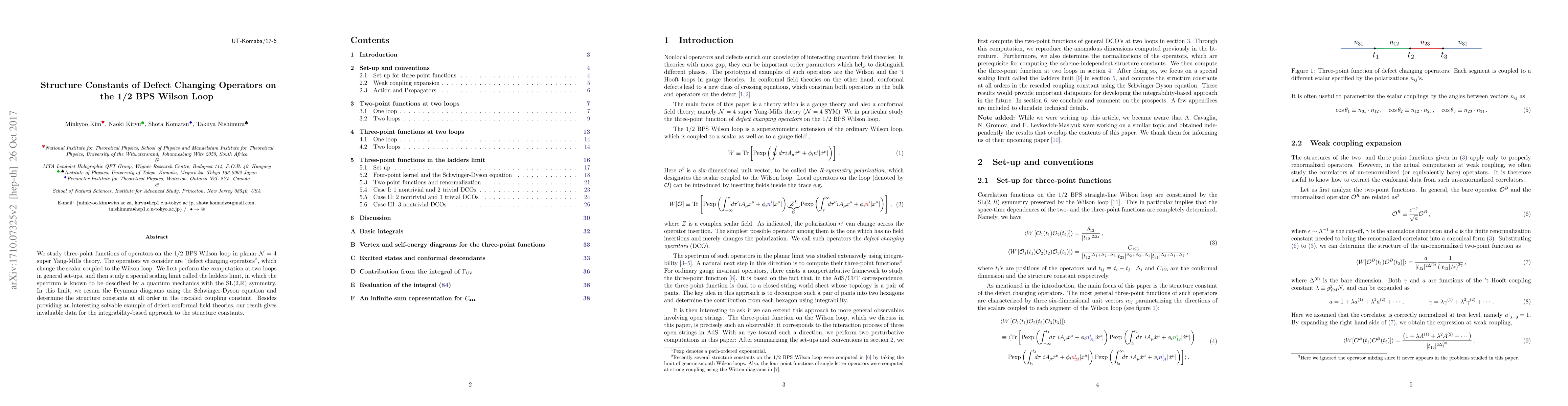 This paper investigates three-point functions of defect changing operators on the $1/2$ BPS Wilson loop in $\mathcal{N}=4$ super Yang-Mills theory, computing structure constants at two loops and analyzing a special scaling limit called the ladders limit. The study provides valuable data for integrability-based approaches to structure constants.