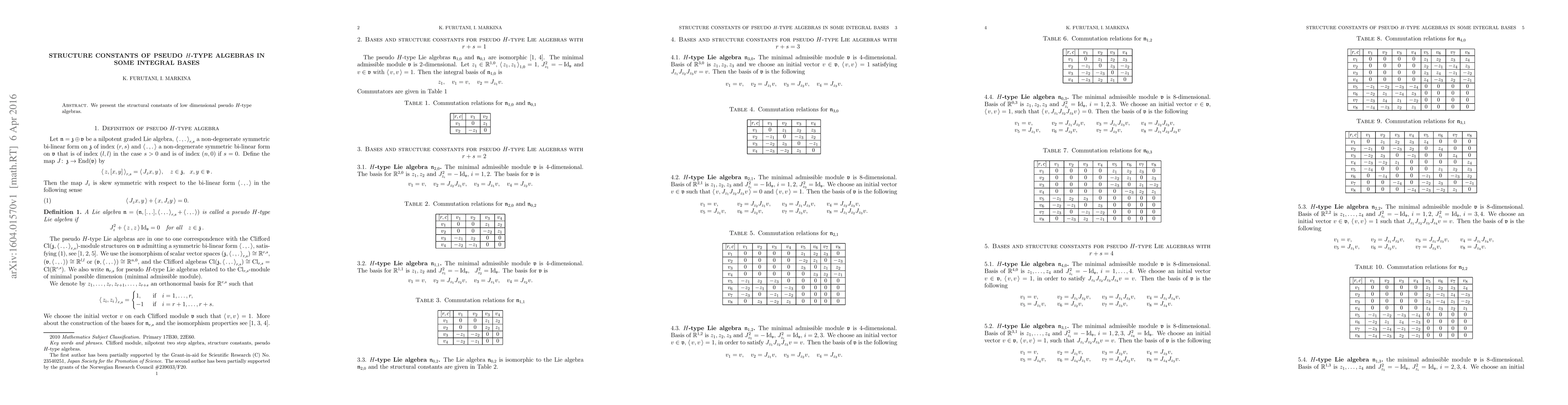 We present the structural constants of low dimensional pseudo $H$-type algebras.