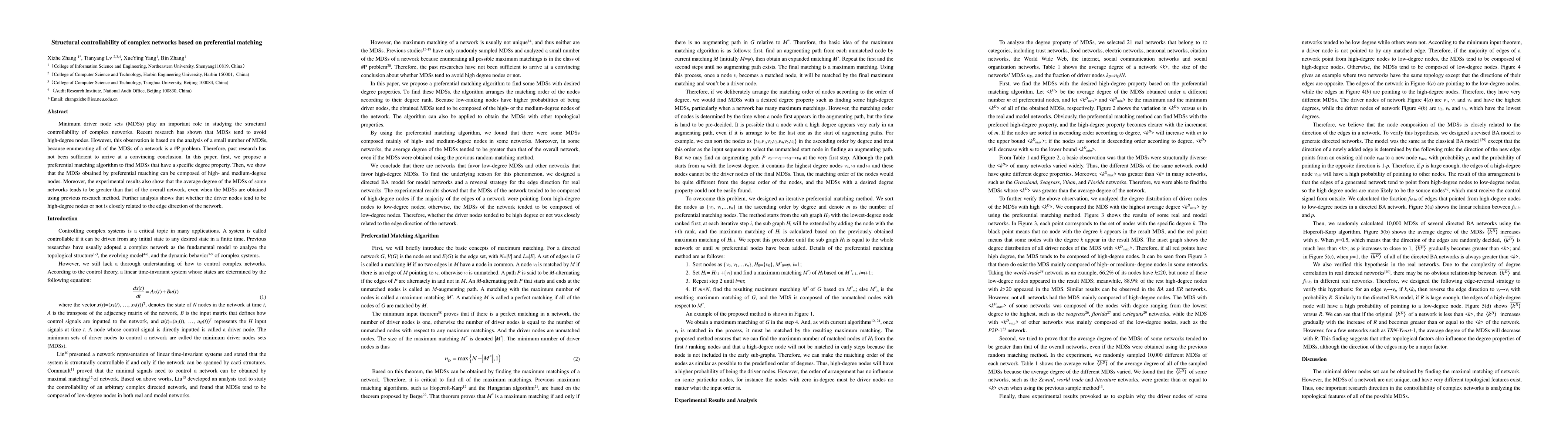 Research finds that minimum driver node sets in complex networks can include both high- and medium-degree nodes, challenging previous assumptions about structural controllability. The study's preferential matching algorithm reveals a relationship between edge direction and the degree distribution of MDSs.