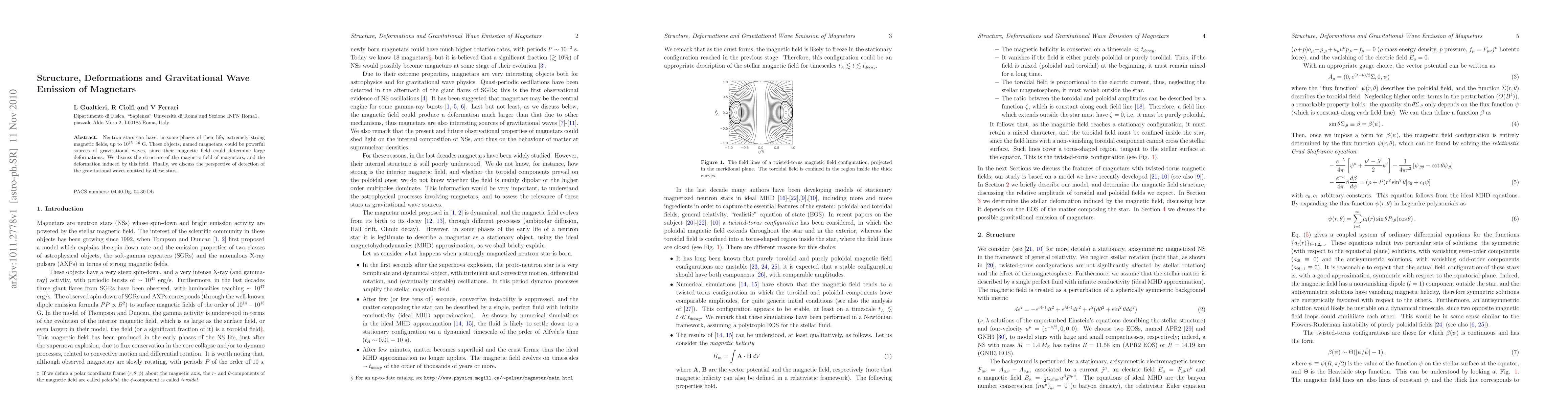 This paper investigates the structural and deformational properties of magnetars, neutron stars with intense magnetic fields, and explores how these characteristics could lead to gravitational wave emission. It concludes by discussing the potential for detecting such gravitational waves.