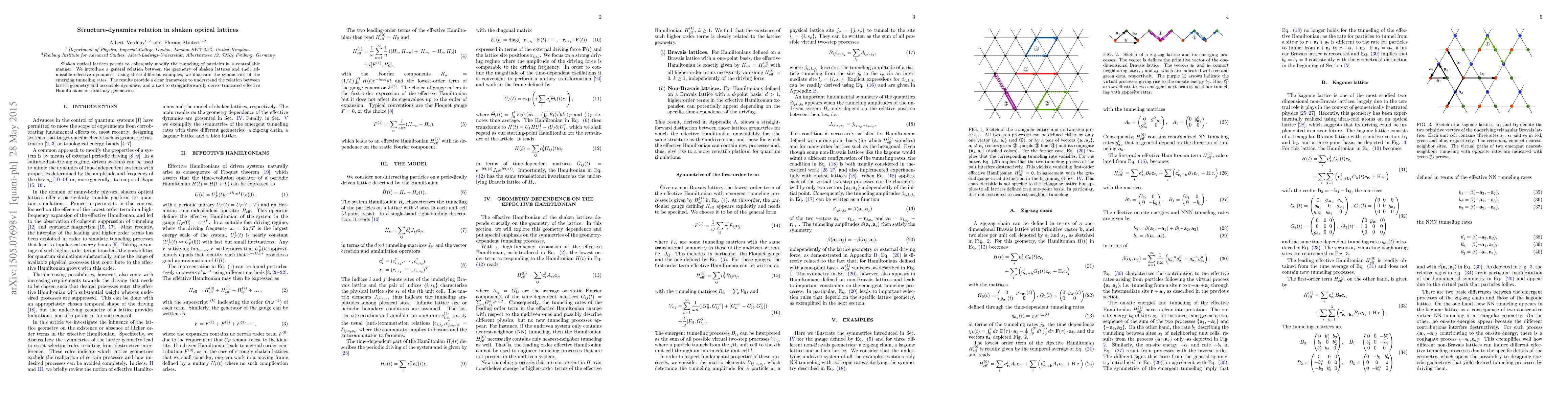 This research establishes a general framework relating the geometry of shaken optical lattices to their effective dynamics, demonstrating how coherent modifications in tunneling rates arise from specific lattice geometries. The findings offer a method to derive truncated effective Hamiltonians for various lattice configurations.
