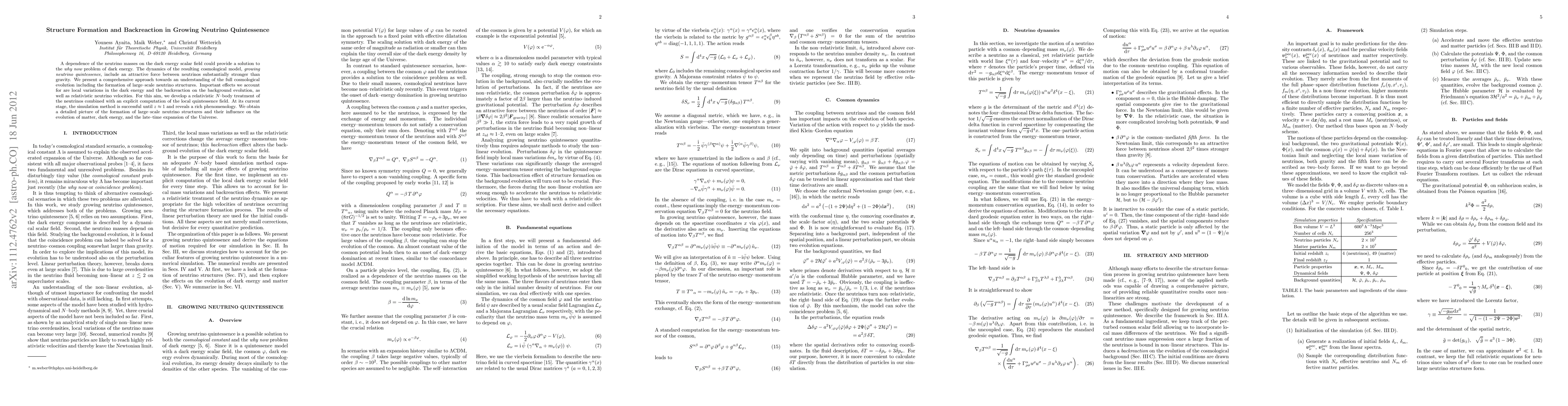 This paper explores the dynamics of growing neutrino quintessence, where neutrino masses depend on a dark energy scalar field, potentially solving the "why now" problem of dark energy. It develops a relativistic N-body simulation to model the formation of large-scale neutrino structures, accounting for local dark energy variations and backreaction effects, revealing a detailed picture of their influence on the universe's expansion.