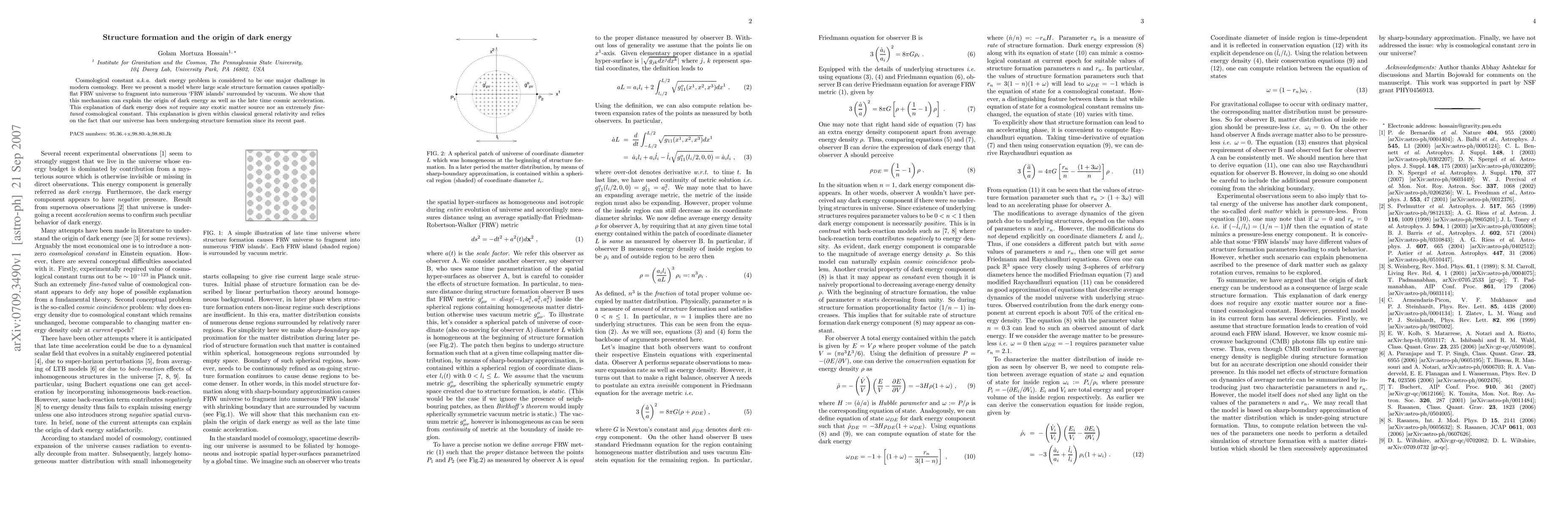 Cosmological constant a.k.a. dark energy problem is considered to be one major challenge in modern cosmology. Here we present a model where large scale structure formation causes spatially-flat FRW universe to fragment into numerous `FRW islands' surrounded by vacuum. We show that this mechanism can explain the origin of dark energy as well as the late time cosmic acceleration. This explanation of dark energy does not require any exotic matter source nor an extremely fine-tuned cosmological constant. This explanation is given within classical general relativity and relies on the fact that our universe has been undergoing structure formation since its recent past.