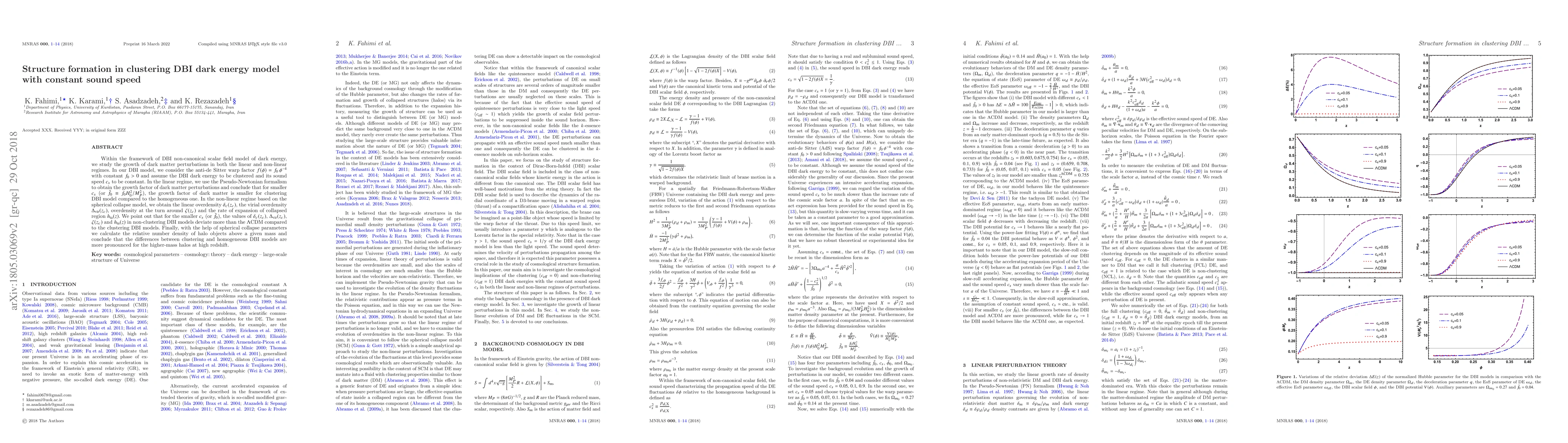 Researchers studied dark energy models using DBI non-canonical scalar field theory, finding that clustered dark energy leads to smaller growth factors in dark matter compared to homogeneous models.
