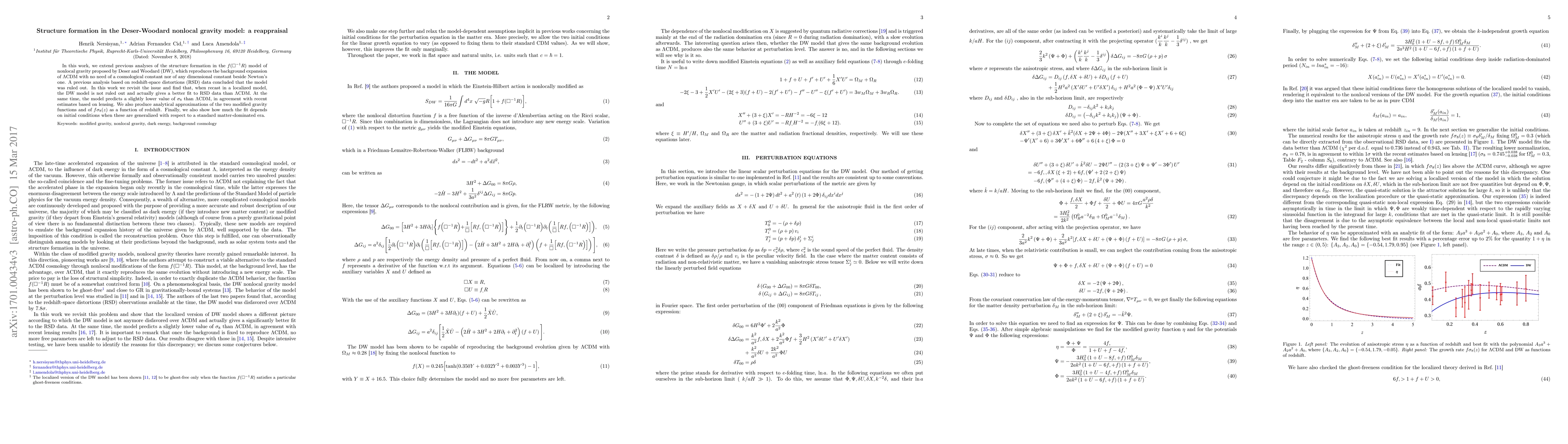In this work, we extend previous analyses of the structure formation in the $f(\Box^{-1}R)$ model of nonlocal gravity proposed by Deser and Woodard (DW), which reproduces the background expansion of $\Lambda$CDM with no need of a cosmological constant nor of any dimensional constant beside Newton's one. A previous analysis based on redshift-space distortions (RSD) data concluded that the model was ruled out. In this work we revisit the issue and find that, when recast in a localized model, the DW model is not ruled out and actually gives a better fit to RSD data than $\Lambda$CDM. At the same time, the model predicts a slightly lower value of $\sigma_{8}$ than $\Lambda$CDM, in agreement with recent estimates based on lensing. We also produce analytical approximations of the two modified gravity functions and of $f\sigma_{8}(z)$ as a function of redshift. Finally, we also show how much the fit depends on initial conditions when these are generalized with respect to a standard matter-dominated era.