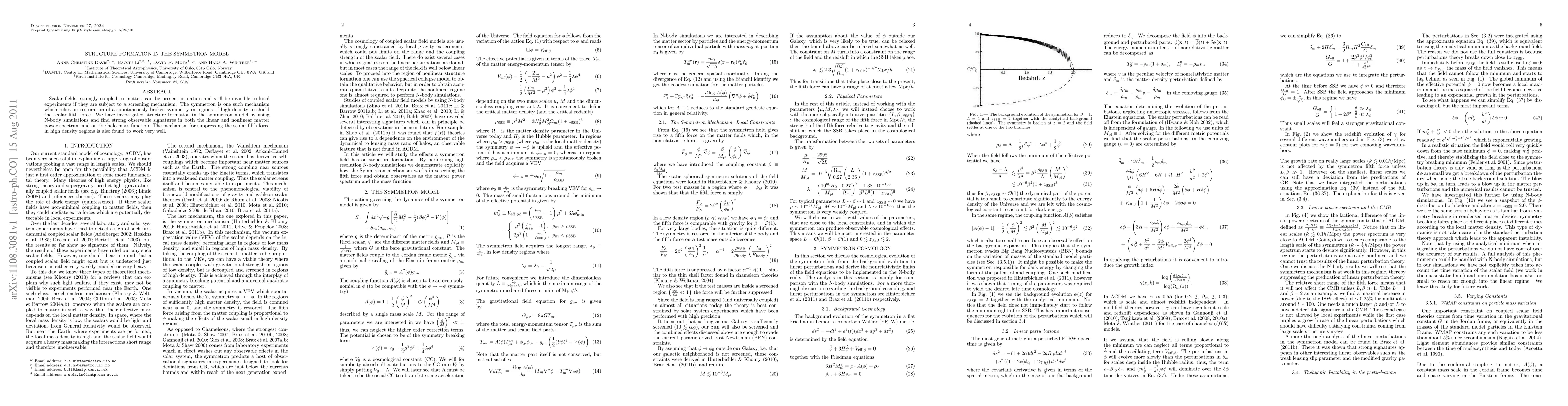 This paper explores the structure formation in the symmetron model, demonstrating strong observable signatures in the matter power spectrum and halo mass function through N-body simulations, while confirming the effective screening mechanism that suppresses the scalar fifth force in dense regions.