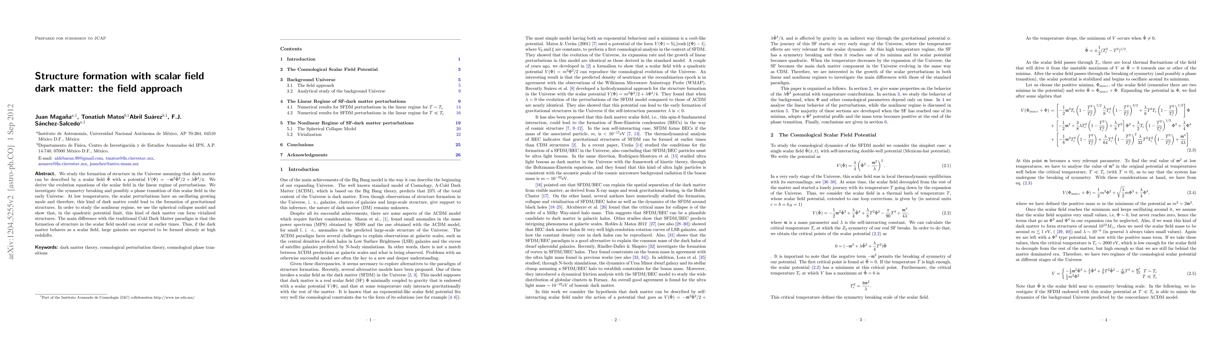 The paper presents a detailed analysis of scalar field dark matter, deriving evolution equations for perturbations and using the spherical collapse model to study structure formation in the nonlinear regime.