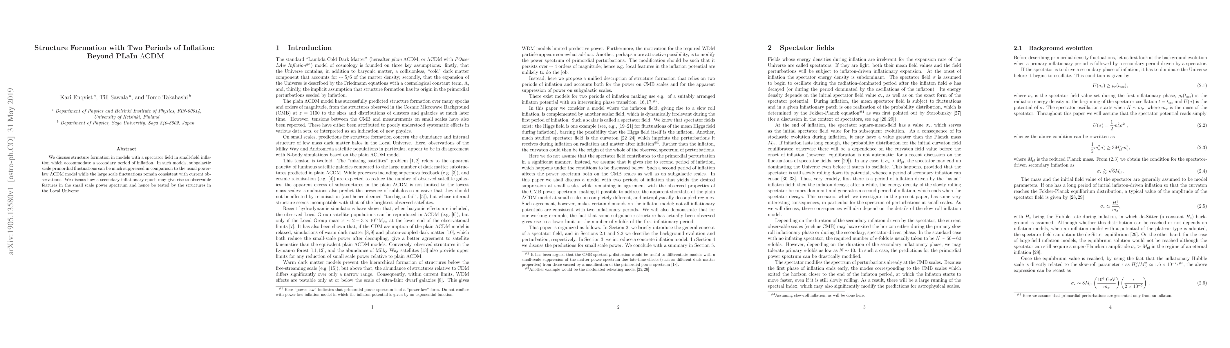 We discuss structure formation in models with a spectator field in small-field inflation which accommodate a secondary period of inflation. In such models, subgalactic scale primordial fluctuations can be much suppressed in comparison to the usual power-law $\Lambda$CDM model while the large scale fluctuations remain consistent with current observations. We discuss how a secondary inflationary epoch may give rise to observable features in the small scale power spectrum and hence be tested by the structures in the Local Universe.