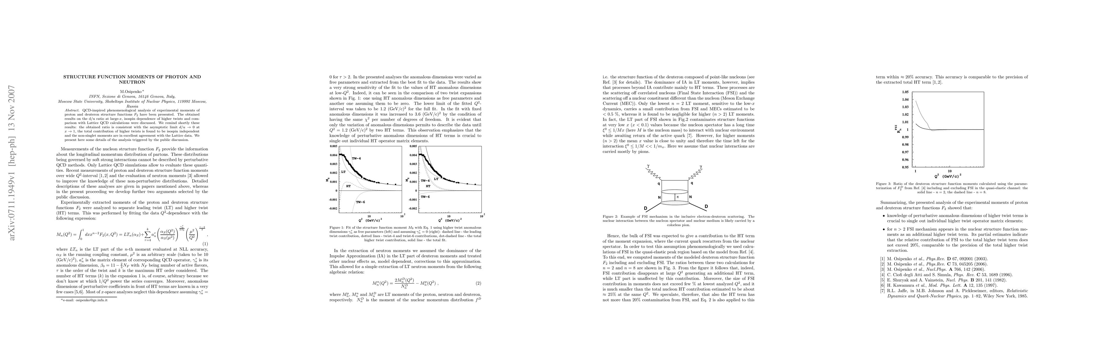 QCD-inspired phenomenological analysis of experimental moments of proton and deuteron structure functions F2 have been presented. The obtained results on the d/u ratio at large-x, isospin dependence of higher twists and comparison with Lattice QCD calculations were discussed. We remind shortly these results: the obtained ratio is consistent with the asymptotic limit d/u-->0 at x-->1, the total contribution of higher twists is found to be isospin independent and the non-singlet moments are in excellent agreement with the Lattice data. We present here some details of the analysis triggered by the public discussion.
