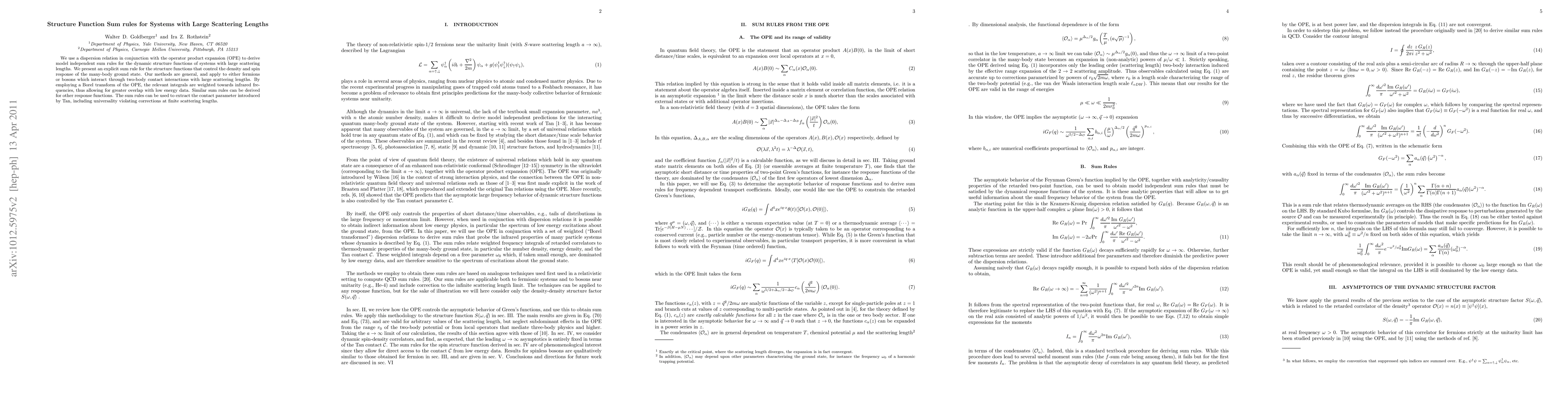 Researchers derived model-independent sum rules for dynamic structure functions in systems with large scattering lengths, providing a new tool to study fermion or boson interactions and extracting the contact parameter.