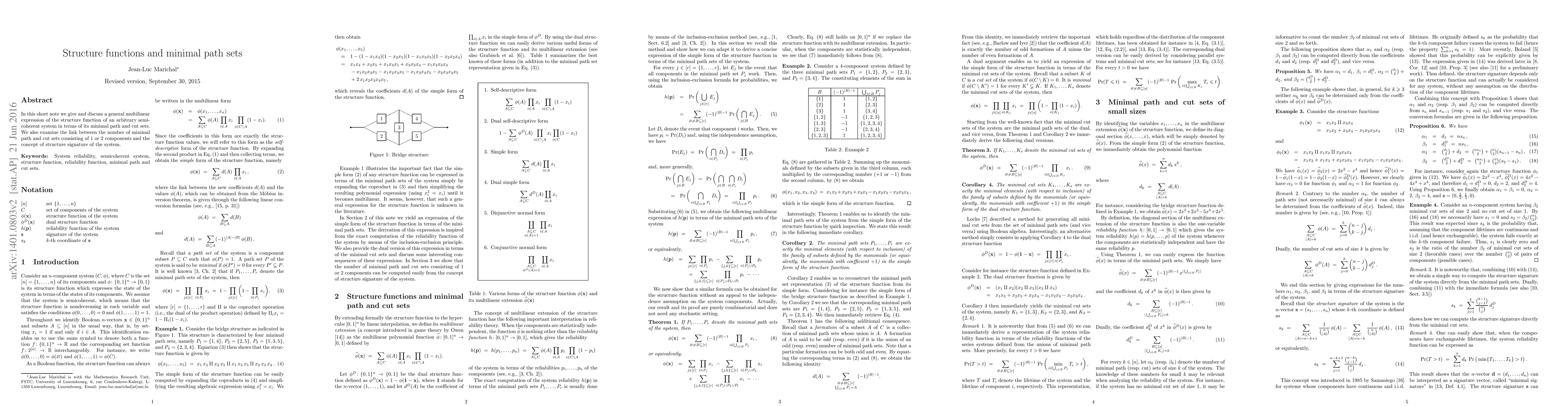 Researchers develop a general multilinear expression for structure functions in semicoherent systems, relating minimal path sets to structure signatures.