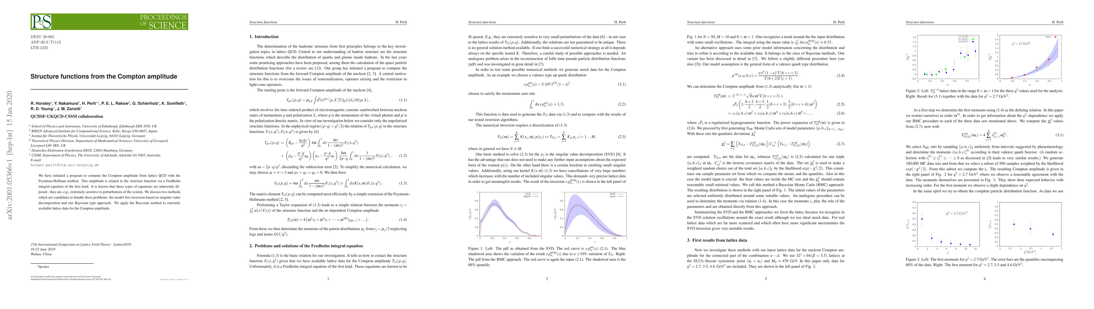 We have initiated a program to compute the Compton amplitude from lattice QCD with the Feynman-Hellman method. This amplitude is related to the structure function via a Fredholm integral equation of the first kind. It is known that these types of equations are inherently ill--posed - they are, e.g., extremely sensitive to perturbations of the system. We discuss two methods which are candidates to handle these problems: the model free inversion based on singular value decomposition and one Bayesian type approach. We apply the Bayesian method to currently available lattice data for the Compton amplitude.