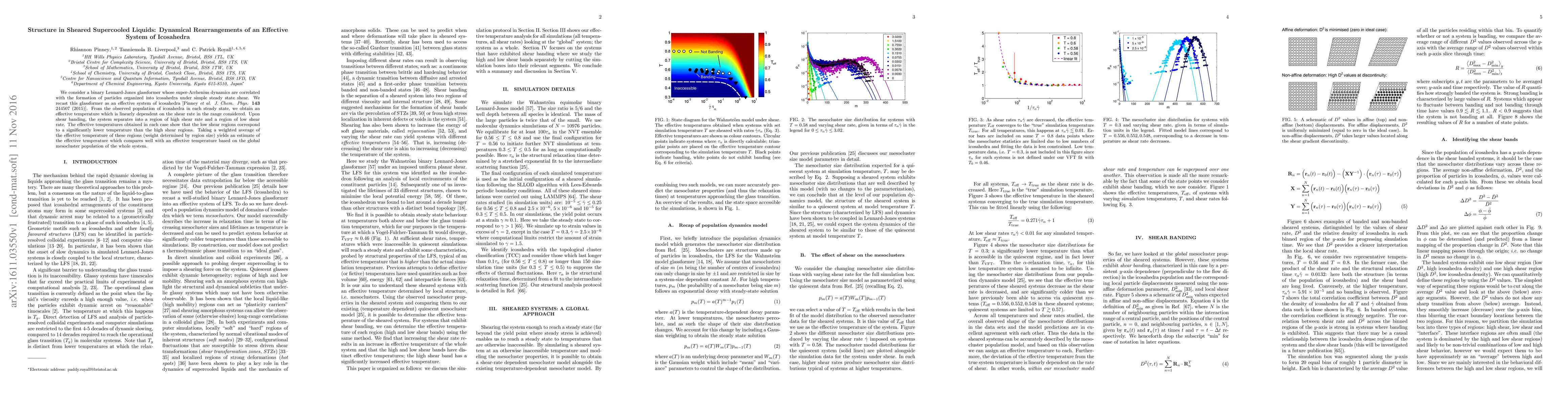 We consider a binary Lennard-Jones glassformer whose super-Arrhenius dynamics are correlated with the formation of particles organized into icosahedra under simple steady state shear. We recast this glassformer as an effective system of icosahedra [Pinney et al. J. Chem. Phys. 143 244507 (2015)]. From the observed population of icosahedra in each steady state, we obtain an effective temperature which is linearly dependent on the shear rate in the range considered. Upon shear banding, the system separates into a region of high shear rate and a region of low shear rate. The effective temperatures obtained in each case show that the low shear regions correspond to a significantly lower temperature than the high shear regions. Taking a weighted average of the effective temperature of these regions (weight determined by region size) yields an estimate of the effective temperature which compares well with an effective temperature based on the global mesocluster population of the whole system.