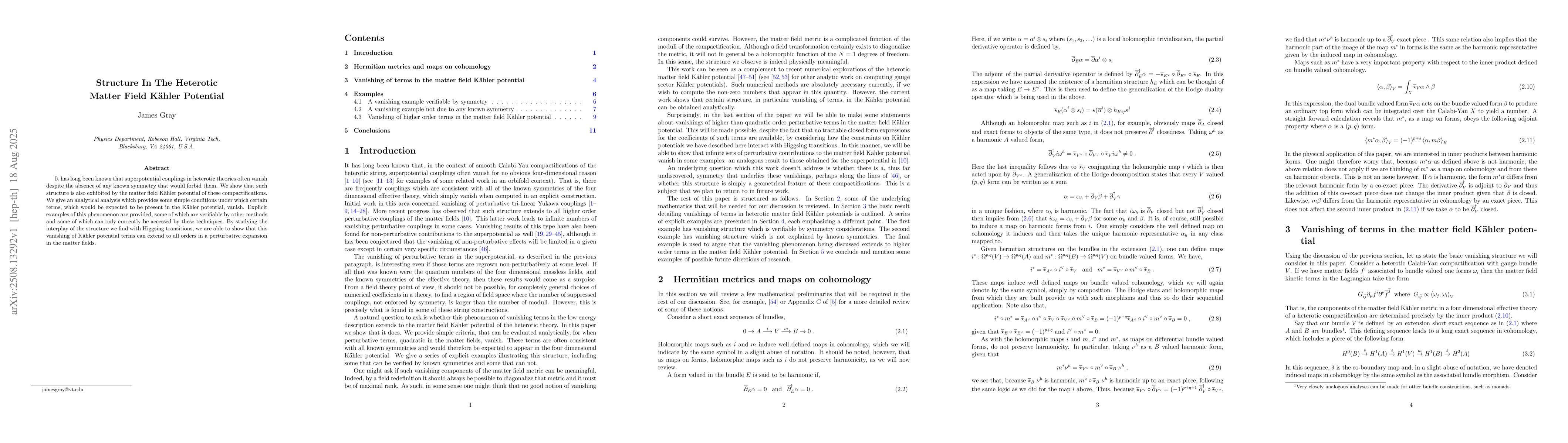 It has long been known that superpotential couplings in heterotic theories often vanish despite the absence of any known symmetry that would forbid them. We show that such structure is also exhibited by the matter field Kahler potential of these compactifications. We give an analytical analysis which provides some simple conditions under which certain terms, which would be expected to be present in the Kahler potential, vanish. Explicit examples of this phenomenon are provided, some of which are verifiable by other methods and some of which can only currently be accessed by these techniques. By studying the interplay of the structure we find with Higgsing transitions, we are able to show that this vanishing of Kahler potential terms can extend to all orders in a perturbative expansion in the matter fields.