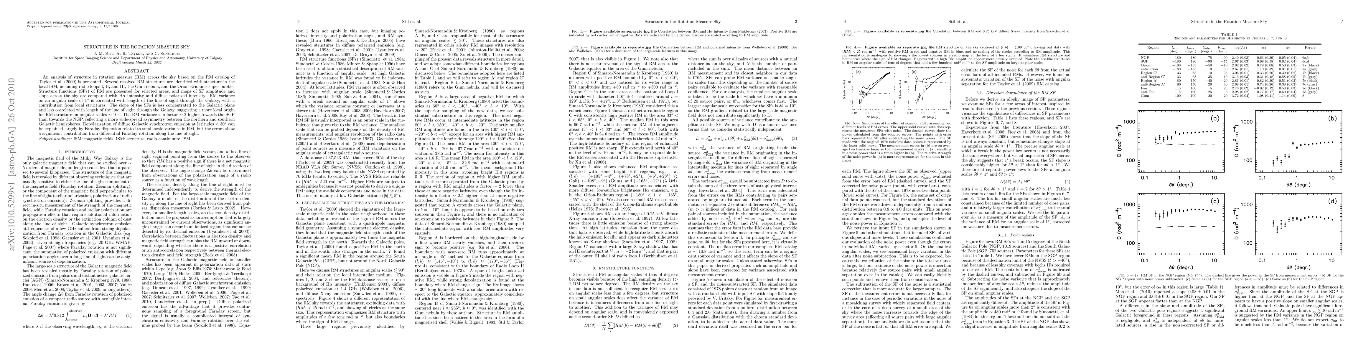An analysis of structure in rotation measure (RM) across the sky based on the RM catalog of Taylor et al. (2009) is presented. Several resolved RM structures are identified with structure in the local ISM, including radio loops I, II, and III, the Gum nebula, and the Orion-Eridanus super bubble. Structure functions (SFs) of RM are presented for selected areas, and maps of SF amplitude and slope across the sky are compared with H-alpha intensity and diffuse polarized intensity. RM variance on an angular scale of 1 degree is correlated with length of the line of sight through the Galaxy, with a contribution from local structures. The slope of the SFs is less concentrated to the Galactic plane and less correlated with length of the line of sight through the Galaxy, suggesting a more local origin for RM structure on angular scales ~ 10 degrees. The RM variance is a factor ~2 higher towards the SGP than towards the NGP, reflecting a more wide-spread asymmetry between the northern and southern Galactic hemispheres. Depolarization of diffuse Galactic synchrotron emission at latitudes < 30 degrees can be explained largely by Faraday dispersion related to small-scale variance in RM, but the errors allow a significant contribution from differential Faraday rotation along the line of sight.