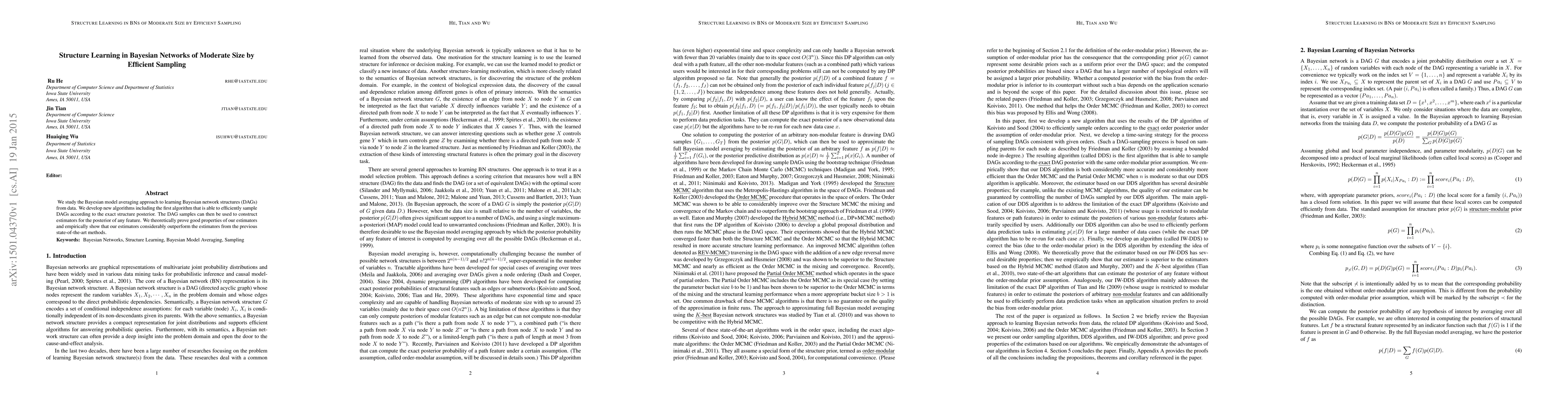 This paper introduces a novel Bayesian model averaging approach for learning Bayesian network structures (DAGs) using efficient sampling algorithms. The developed algorithms outperform previous methods by providing better estimators for the posterior of any feature, as shown both theoretically and empirically.