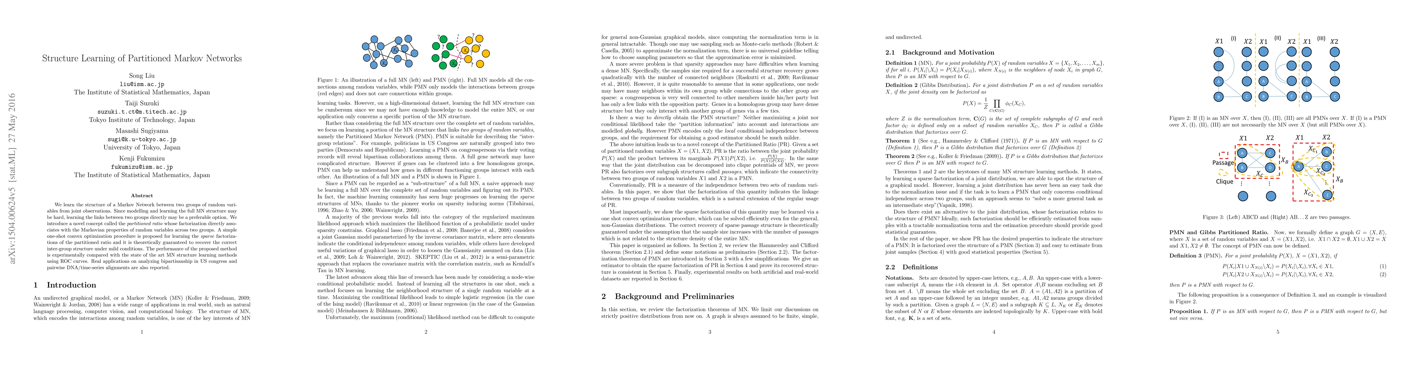 This paper proposes a novel method for learning the structure of Markov Networks between two groups of variables using a partitioned ratio concept and a convex optimization procedure. The method is theoretically guaranteed to recover the correct inter-group structure and is experimentally compared against state-of-the-art methods, demonstrating its effectiveness in real-world applications like analyzing US congress bipartisanship and DNA/time-series alignments.