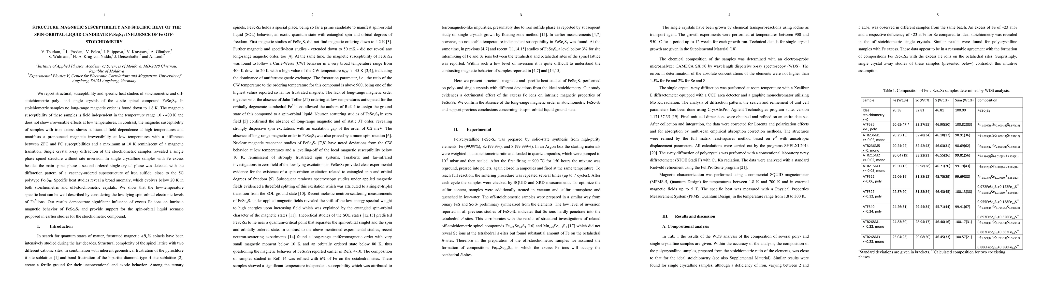 This study investigates FeSc2S4, finding no long-range magnetic order in stoichiometric samples down to 1.8 K, while off-stoichiometric samples with iron excess show magnetic irreversibility and a transition-like behavior at 10 K. The research supports the spin-orbital liquid scenario for the stoichiometric compound.