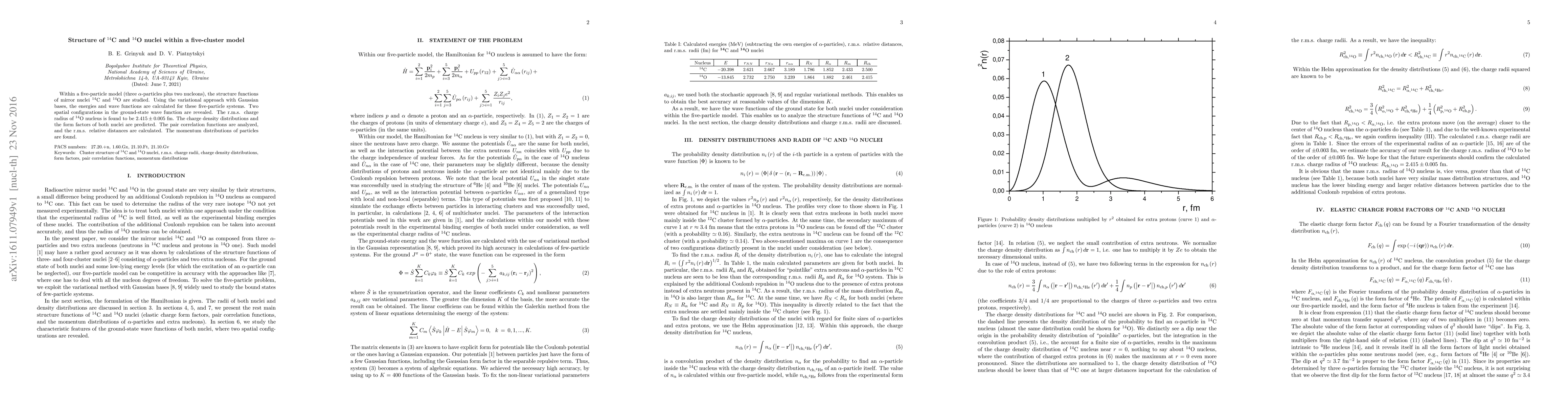 Researchers studied the structure of $^{14}$C and $^{14}$O nuclei using a five-particle model, revealing two ground-state wave functions and predicting charge density distributions, form factors, and particle momentum distributions.
