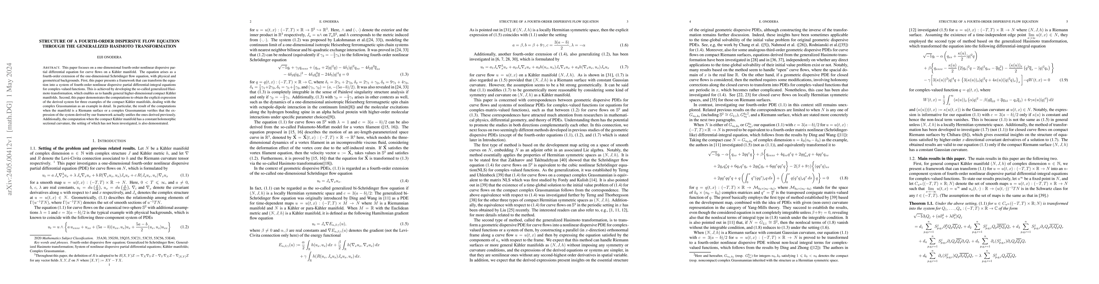 This paper develops a generalized Hasimoto transformation to transform a fourth-order dispersive flow equation into a system of fourth-order nonlinear dispersive partial differential-integral equations, facilitating analysis on higher-dimensional Kähler manifolds. The approach is exemplified through computations for three compact Kähler manifolds, with a detailed case study of the complex Grassmannian.