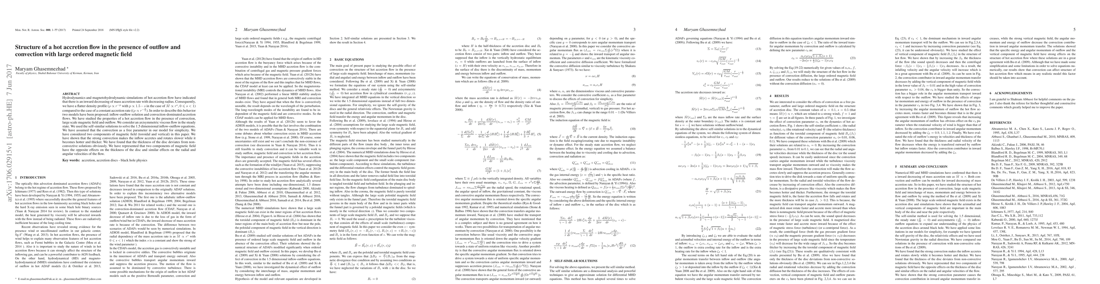 This paper investigates the structure of hot accretion flows with outflow and convection under the influence of a large ordered magnetic field. The study shows that strong convection results in slower accretion and rotation, while making the flow hotter and thicker, with the magnetic field components having opposite effects on the disc's thickness but similar effects on radial and angular velocities.
