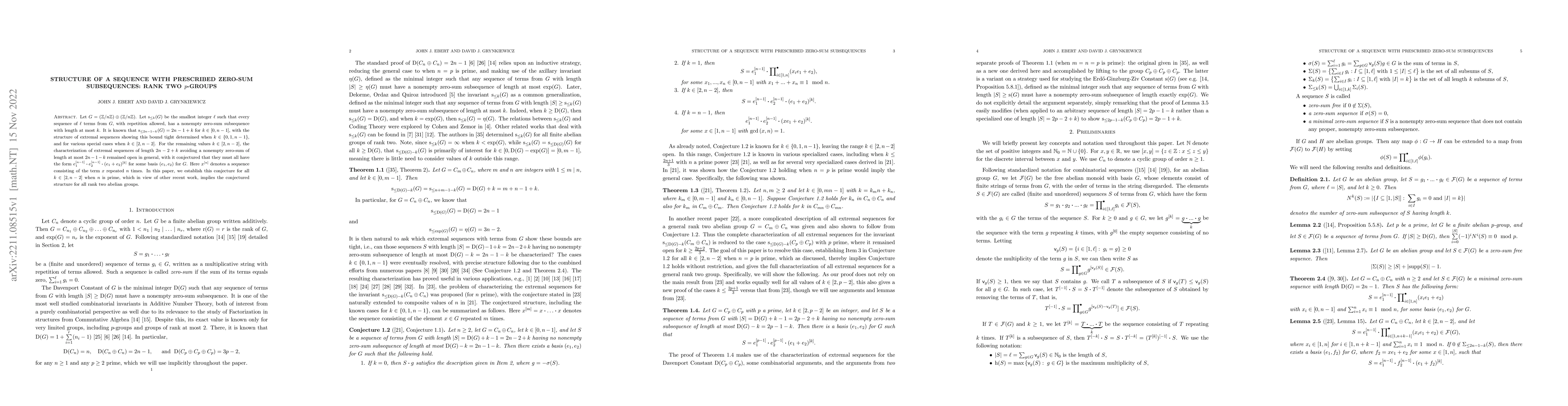 This paper establishes the conjecture that for rank two abelian groups $G=(\mathbb Z/n\mathbb Z) \oplus (\mathbb Z/n\mathbb Z)$, extremal sequences of length $2n-2+k$ avoiding a zero-sum subsequence of length at most $2n-1-k$ must have the form $e_1^{[n-1]} \boldsymbol{\cdot} e_2^{[n-1]} \boldsymbol{\cdot} (e_1 +e_2)^{[k]}$ for some basis $(e_1,e_2)$ for $G$, proving this for all $k\in [2,n-2]$ when $n$ is prime.