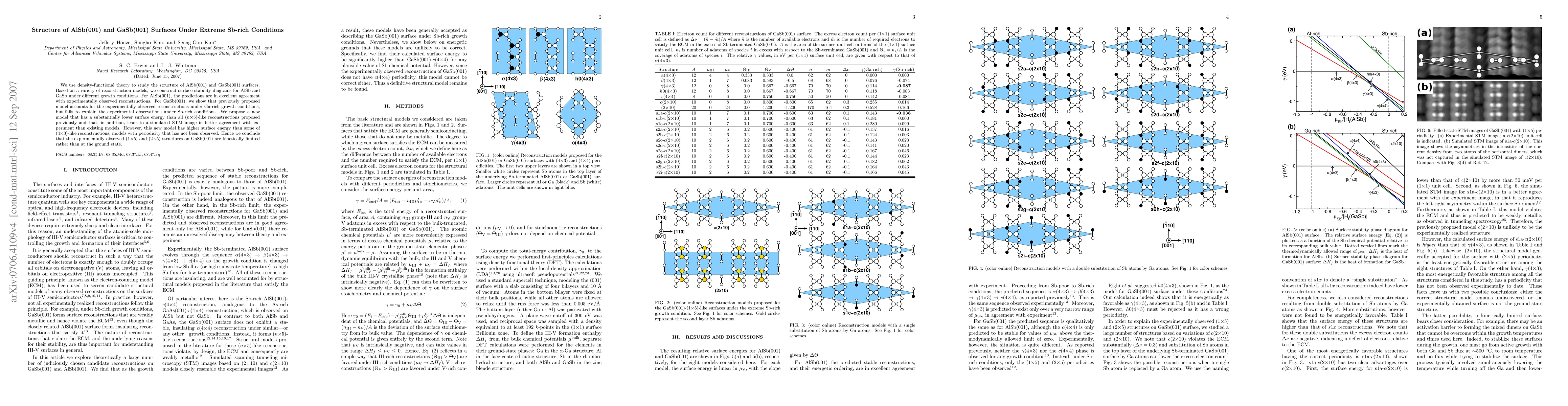 This study uses density-functional theory to analyze AlSb(001) and GaSb(001) surface structures under Sb-rich conditions. It proposes a new model for GaSb(001) with lower surface energy than previous models, explaining experimental observations better, though acknowledging the observed (1x5) and (2x5) structures are kinetically limited rather than at ground state.