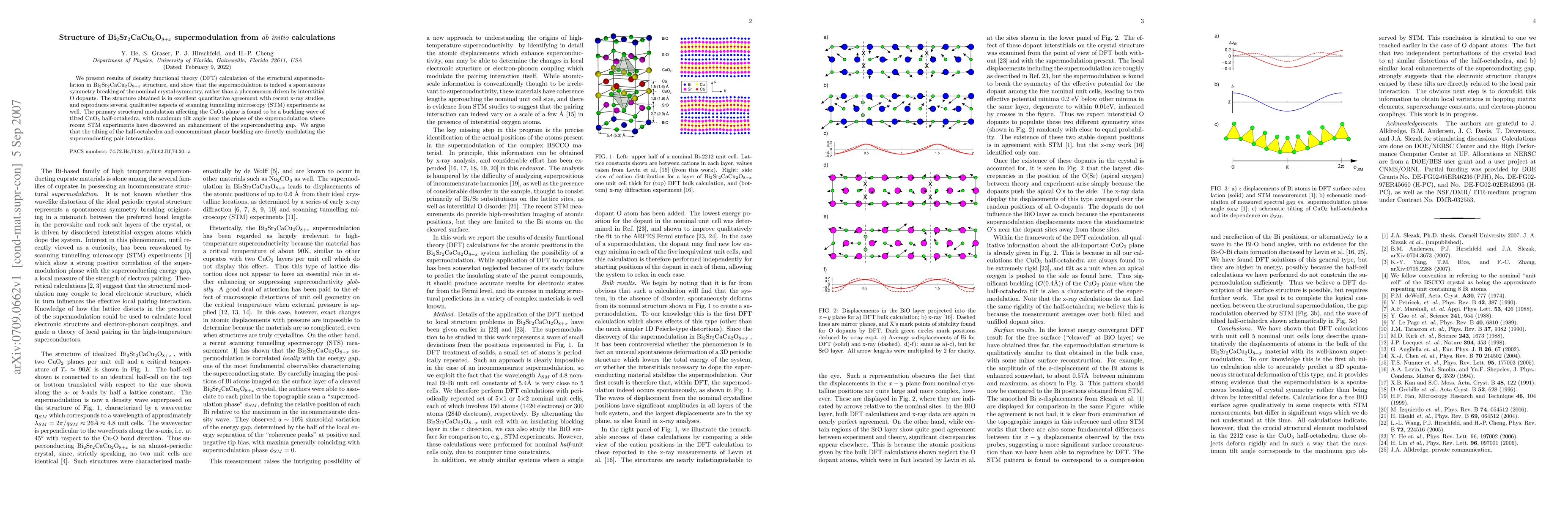 This study uses density functional theory to demonstrate that structural supermodulation in BSCCO-2212 arises from spontaneous symmetry breaking rather than dopant-induced effects. The calculated structure aligns well with experimental x-ray and STM data, highlighting a buckling wave in CuO_2 planes that directly influences superconducting pair interactions.