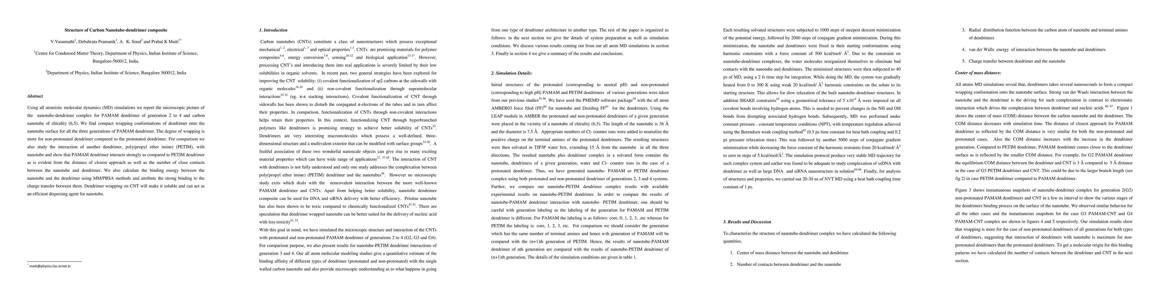 Researchers used molecular dynamics simulations to study the interaction between carbon nanotubes and dendrimers, finding that the dendrimer wrapping around the nanotube surface makes it soluble and acts as an efficient dispersing agent.