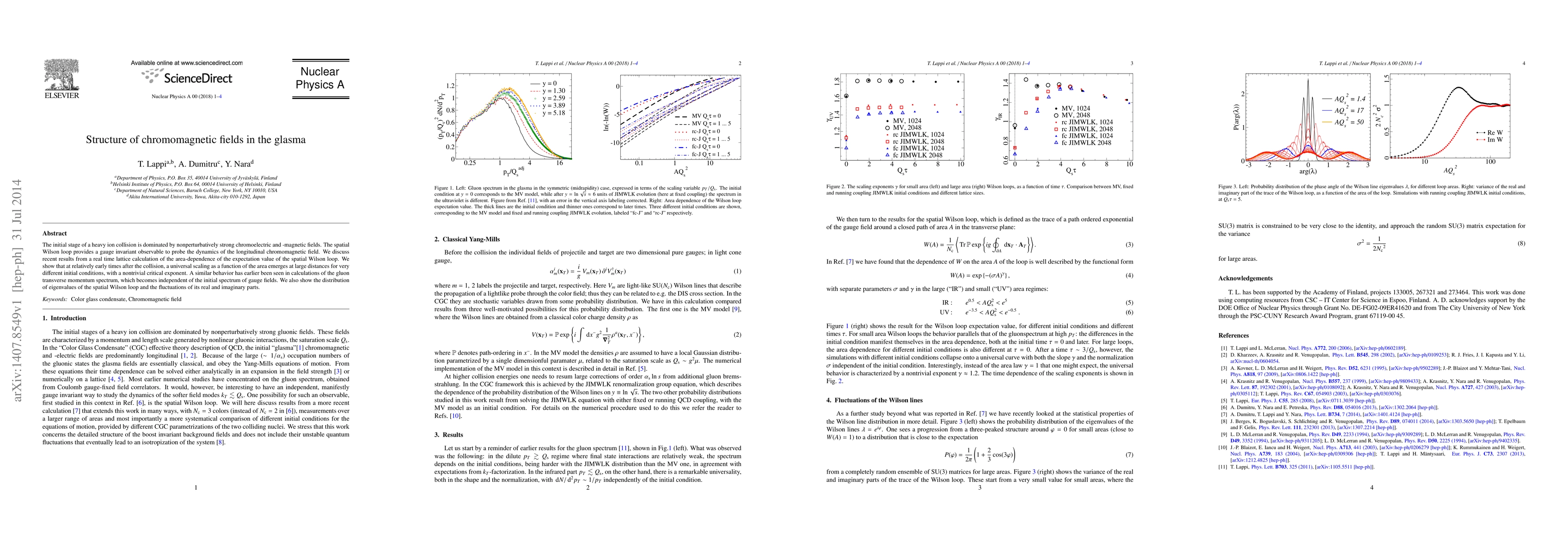 The initial stage of a heavy ion collision is dominated by nonperturbatively strong chromoelectric and -magnetic fields. The spatial Wilson loop provides a gauge invariant observable to probe the dynamics of the longitudinal chromomagnetic field. We discuss recent results from a real time lattice calculation of the area-dependence of the expectation value of the spatial Wilson loop. We show that at relatively early times after the collision, a universal scaling as a function of the area emerges at large distances for very different initial conditions, with a nontrivial critical exponent. A similar behavior has earlier been seen in calculations of the gluon transverse momentum spectrum, which becomes independent of the initial spectrum of gauge fields. We also show the distribution of eigenvalues of the spatial Wilson loop and the fluctuations of its real and imaginary parts.